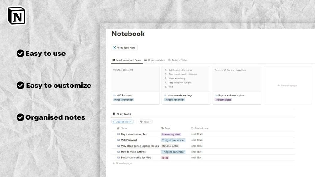 This is a page to help you get started on note taking in Notion. Your notes will be organised by date and tags. Everything is customisable.